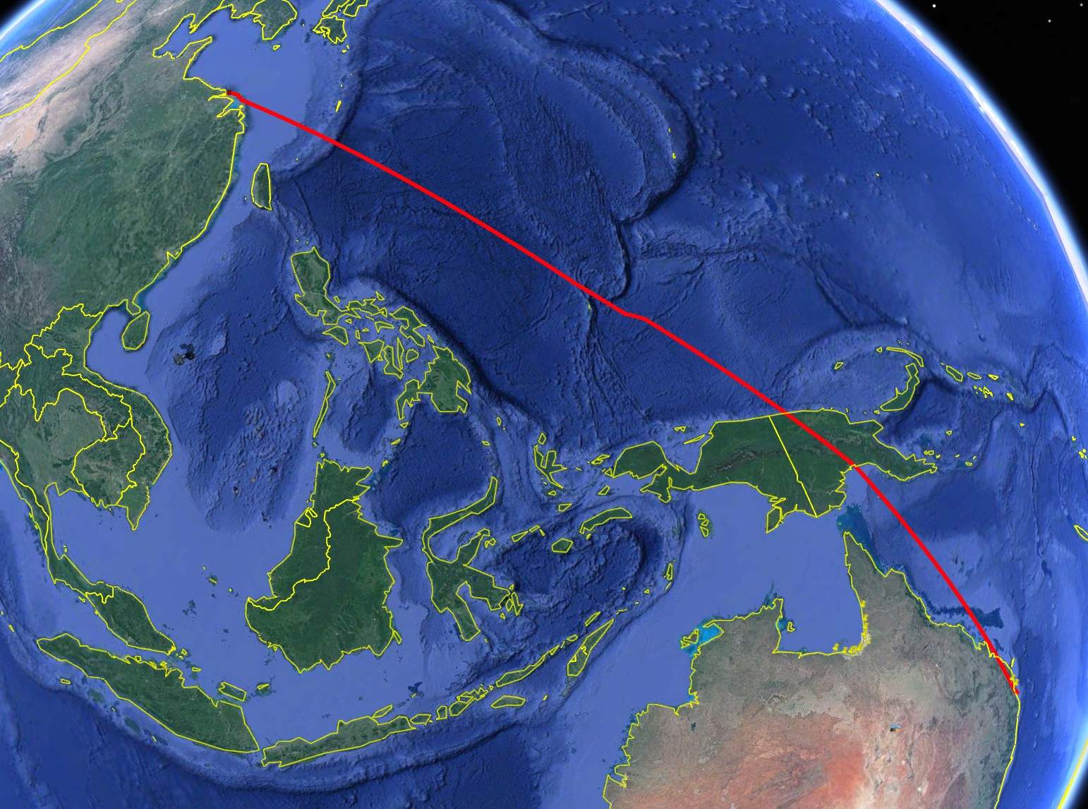 In the northern hemisphere you see similar sections of the path with no data i've been to australia by flying east from michigan and my girlfriend got there flying west from.
